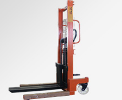 手動液壓堆高車是利用人力推拉運行的簡易式插腿式叉車。堆高車用途廣泛,可對成件托盤貨物進行裝卸、堆高、堆垛和短距離運輸作業的各種輪式搬運車輛。