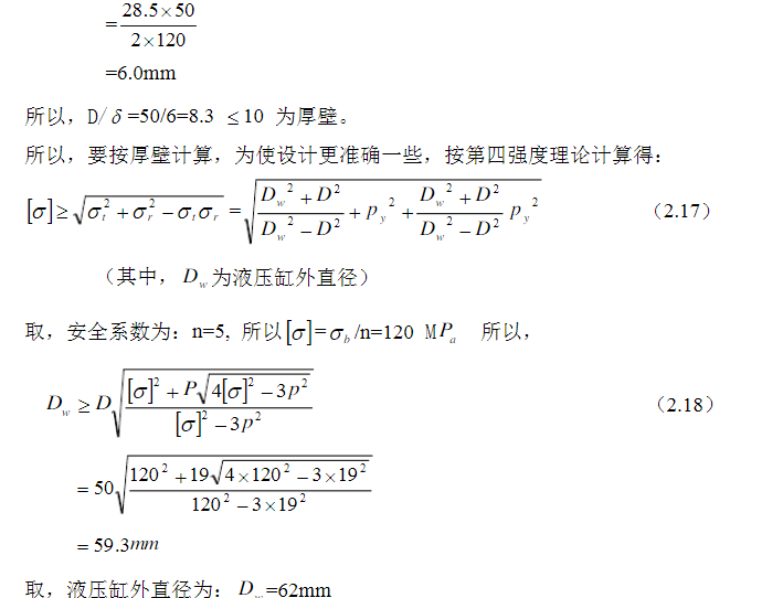 為使液壓缸結構較小,先把液壓缸按薄壁計算。因為,D/6210時,為薄壁