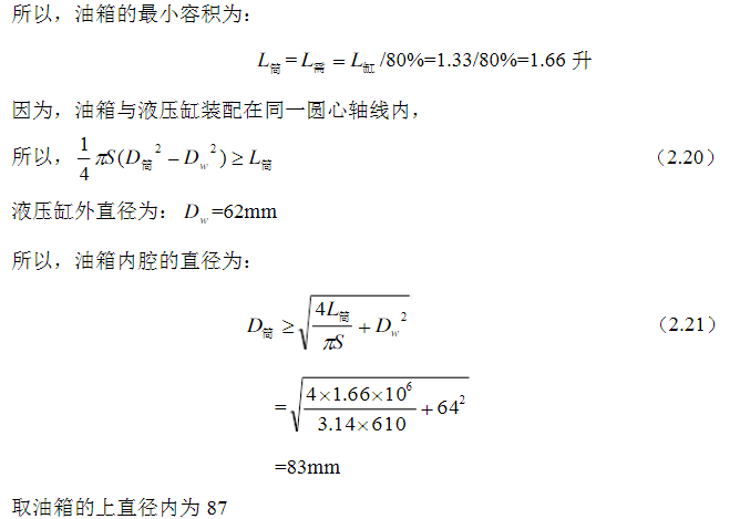 為使液壓系統結構更緊湊,把油簡與液壓缸裝配在同一圓心軸線內。要求∶油筒油面的最高高度不超過,油簡高度的80%